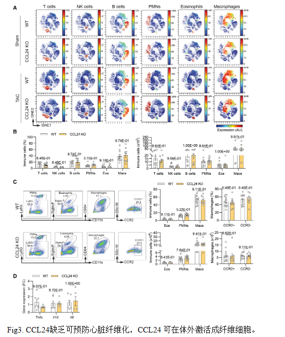 结论3:CCL24缺失可防止心脏纤维化,而CCL24在体外可激活成纤维细胞。