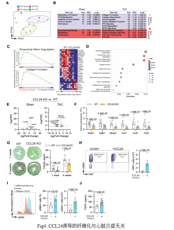 结论4: CCL24 诱导的纤维化重塑与心脏炎症无关
