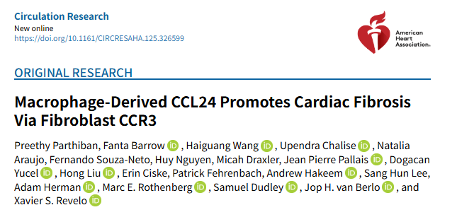 Parthiban P, Barrow F, Wang H, et al. Macrophage-Derived CCL24 Promotes Cardiac Fibrosis Via Fibroblast CCR3. Circ Res. Published online September 16, 2025. doi:10.1161/CIRCRESAHA.125.326599