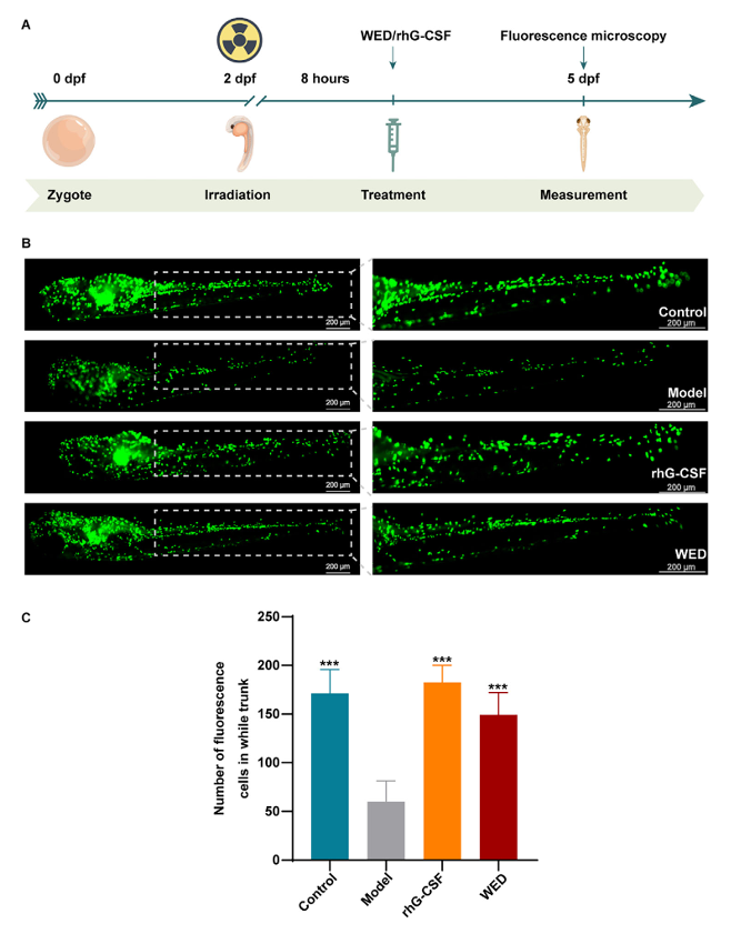 2. WED加速辐射诱导中性粒细胞减少斑马鱼模型的中性粒细胞恢复