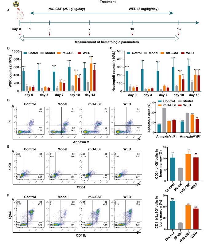3. WED在辐射诱导中性粒细胞减少小鼠模型中促进造血恢复
